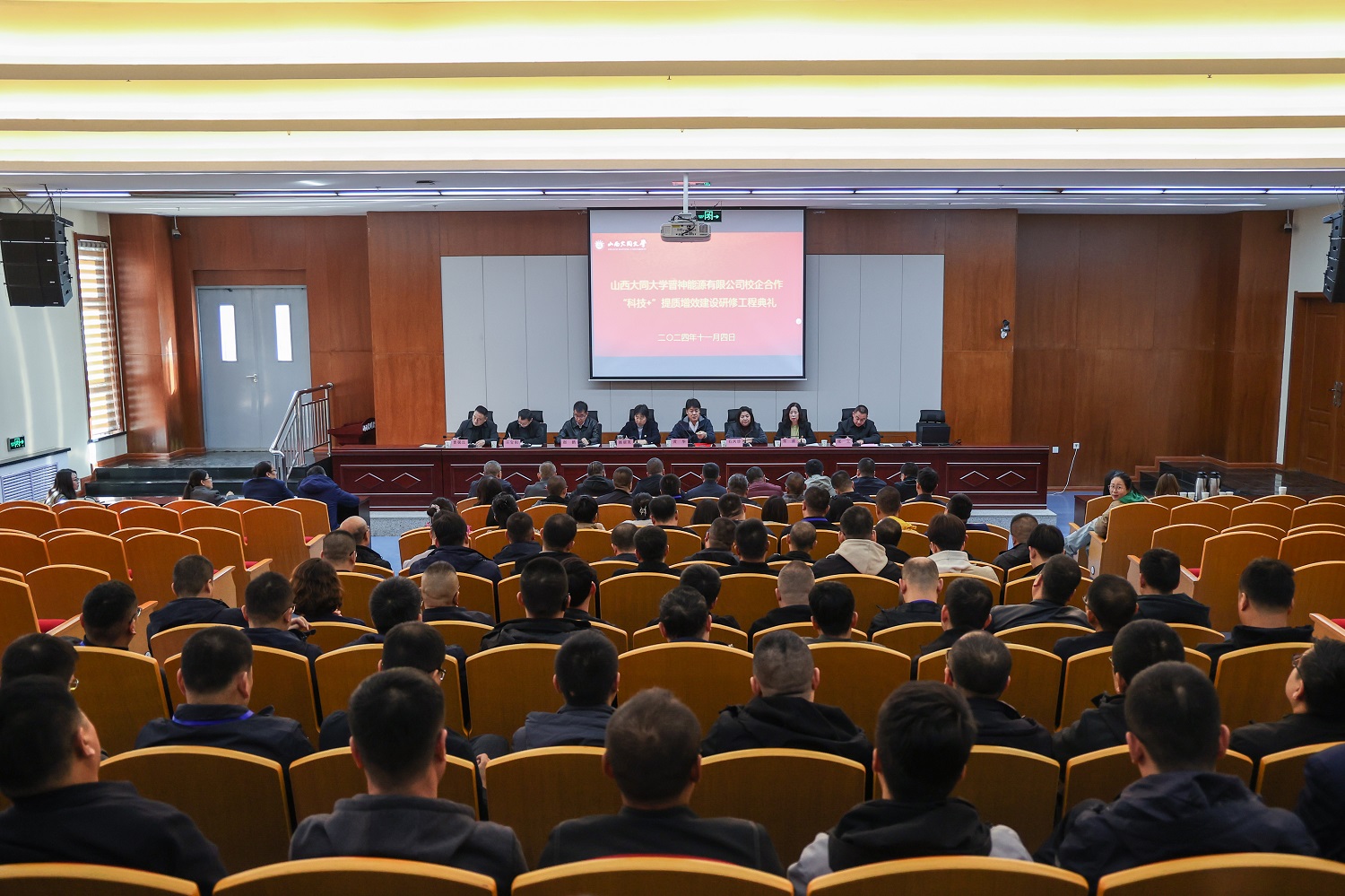 11月4日,山西大同大学·山西省晋神能源有限公司校企合作“科技+”提质增效建设研修工程(第四期)启动仪式在新平旺校区图书馆学术报告厅举行。校党委副书记、校长姚丽英,山西省晋神能源有限公司党委书记、董事长黄华,校党委常委、副校长石凤珍,山西省产教融合促进会副会长赵鹏出席。煤炭工程学院有关负责人,山西省晋神能源有限公司有关部门负责人、140余名参训干部职工以及师生代表参加。石凤珍主持仪式。